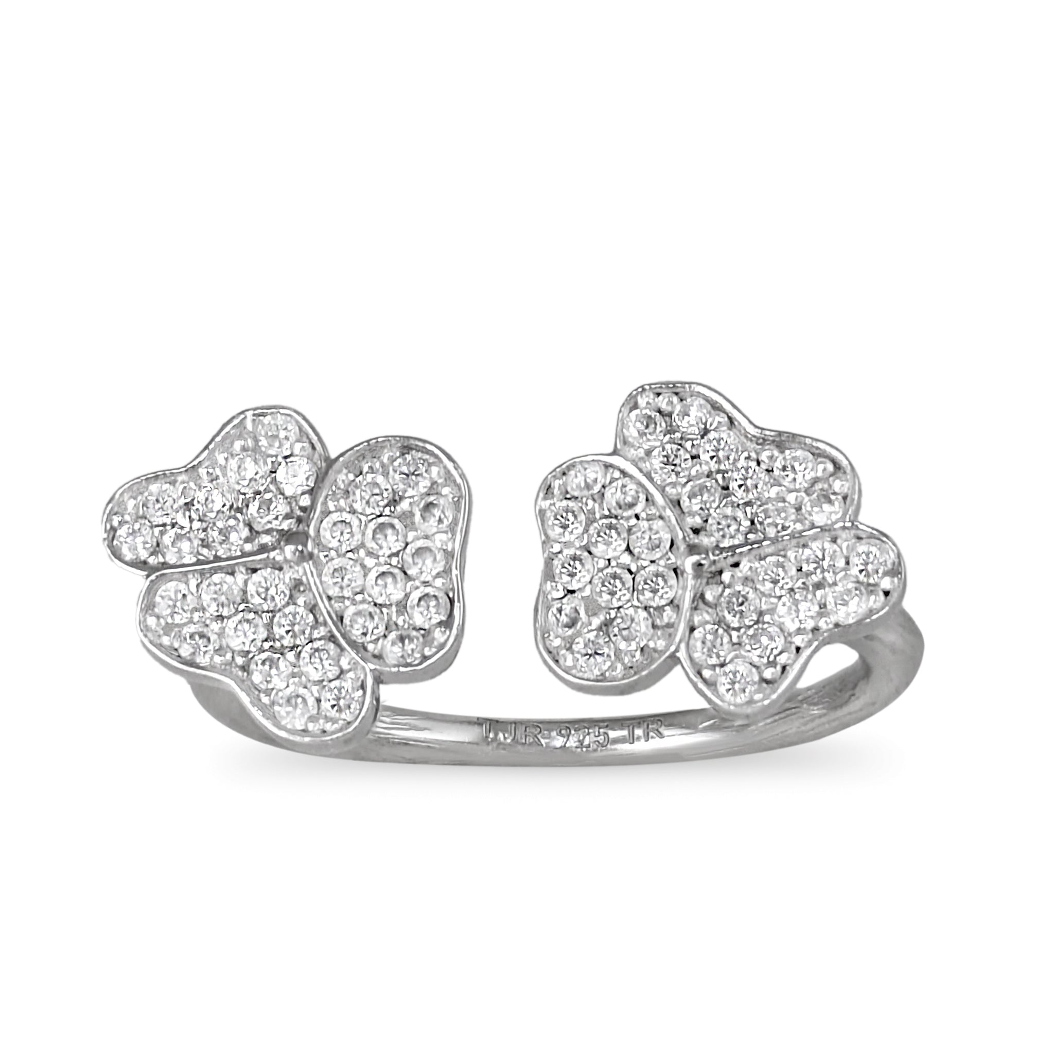 Dual Clover Open Band Ring with CZ Pavé